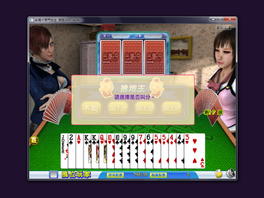 - 地主斷線時系統會自動PASS,直到其中一家佃農牌出完地主輸。