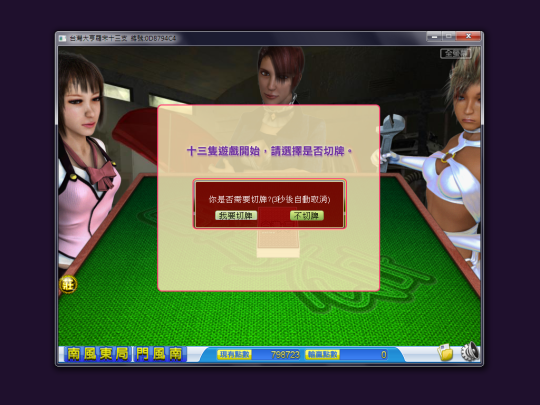 - 遊戲一開始為將的開始,抓位取得風位名稱,第一次由東風位玩家當莊開始洗牌,洗完牌後其他三家輪流決定是否切牌,切完牌後由莊家翻一張牌,取得點數後,由莊家開始計算,然後從該位玩家開始發牌並且決定新的莊家為該位完家。之後每盤莊家輪流當,16盤完即完成一將。