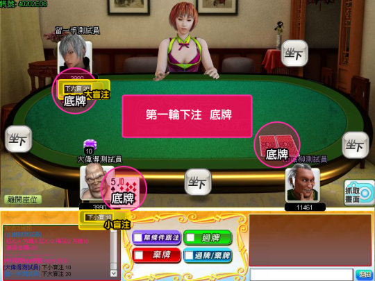 在大廳點選德州撲克遊戲,即可進到德州撲克的選注畫面。德州撲克的牌桌是依據盲注大小來決定,請挑選想玩的盲注大小,雙擊後進入。